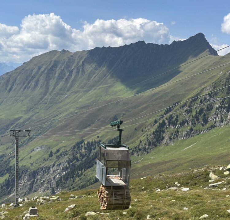 - Die Materialseilbahn bringt Brennholz zur Geraer Hütte