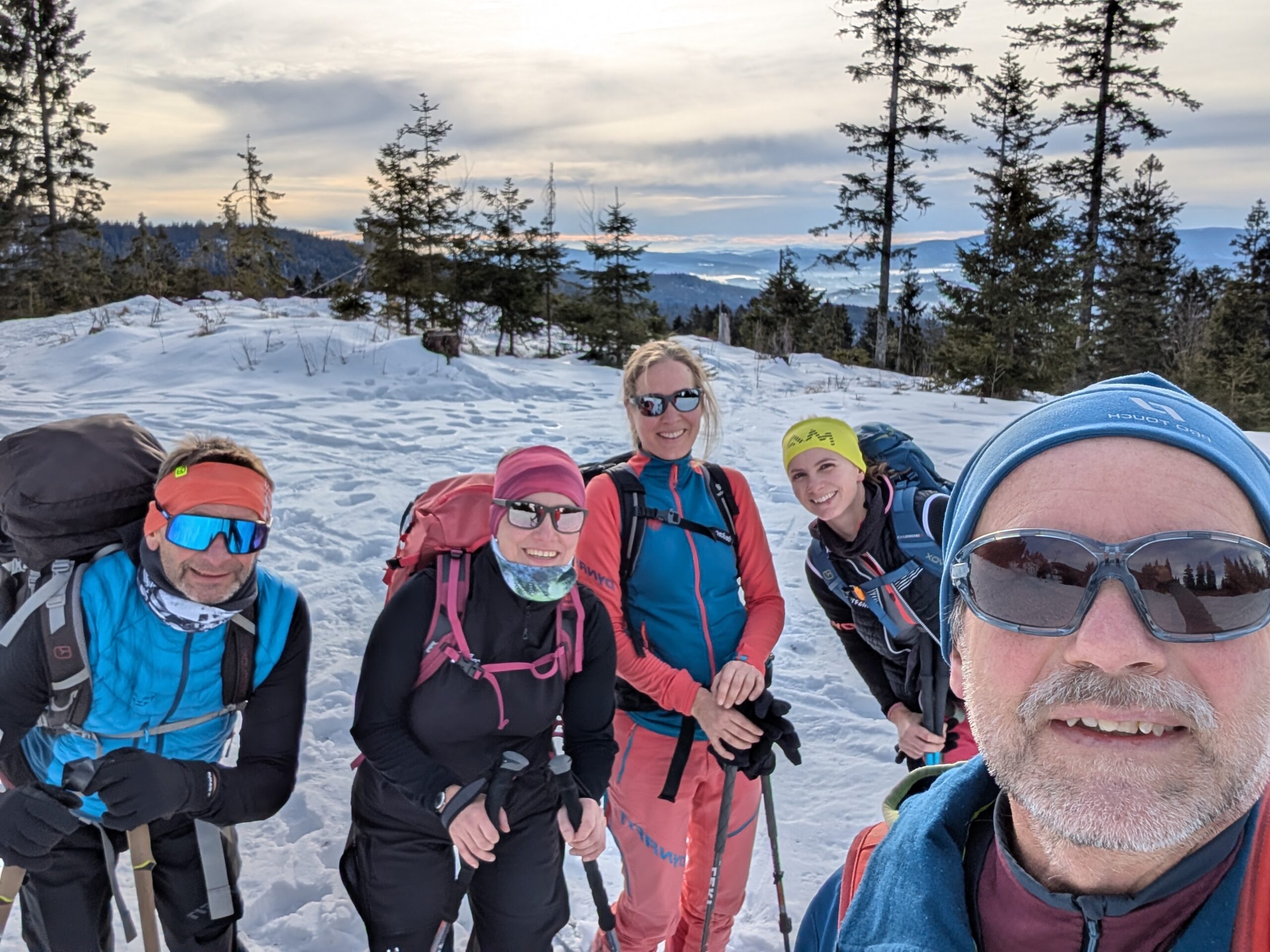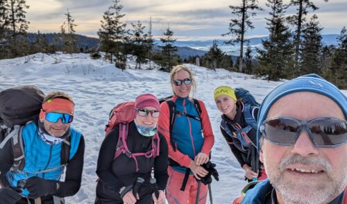 Am 25.01.2026 trafen wir uns zu viert mit unserem Tourenführer Ludwig Able zu einer Skitour auf den Arber – trotz angesagtem Schneefall und starken Böen. Überraschend erwarteten uns oberhalb der Nebelgrenze milde Temperaturen und Sonne. Über abwechslungsreiche Aufstiegsrouten durch den Wald erreichten wir die Zwieseler Hütte, genossen Panorama und Pause und stiegen anschließend weiter Richtung Gipfel auf. Bei frühlingshaften Bedingungen konnten wir unsere Technik verfeinern und oben sogar windstill das Gipfelpanorama erleben. Ein Teil der Gruppe bestieg den Arber noch ein drittes Mal, bevor wir den Tag gemeinsam im Arberschutzhaus ausklingen ließen. Ein rundum gelungener Tourentag – vielen Dank an Ludwig für die tolle Führung und Routenauswahl.