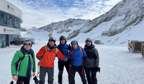 Was im Vorfeld bereits zu befürchten stand, wurde bei Ankunft im Gletscherskigebiet zur traurigen Gewissheit: die Schneelage ließ keinen ungetrübten Abfahrtsspaß im frischen Powder zu. Stattdessen erwartete uns ein felsdurchsetzter Anblick der angepeilten Variantenabfahrten. Den Freitagnachmittag nutzten wir daher um uns wieder an Material und Schnee zu gewöhnen und Abfahrts(kilo)meter im erstaunlich verwaisten Skigebiet zu sammeln – erste Techniktipps inklusive. Gegen Ende des Tages fanden wir dann doch noch zumindest im pistennahen Bereich die Möglichkeit die gewalzten Pisten zumindest für einige Schwünge hinter uns zu lassen bevor wir die Gondel ins Tal bestiegen. Zumindest die Unterkunft ließ mit hauseigenem Wellnessbereich keine Wünsche offen.