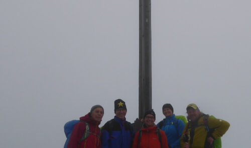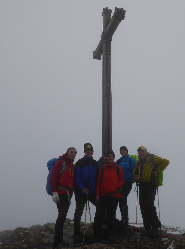 Sehr wenig Leute waren unterwegs und auf dem Rotwandhaus war eine warme Suppe gerade recht. Auf der Rotwandspitze gibt es eine Orientierungsscheibe mit den evtl. zu sehenden Bergen. Diese Scheibe vertiefte unser Wissen über das Umliegende, weitere Sicht war dazu nicht nötig, so konnte Jede und Jeder seine Sichtweise über das Bergwandern und um die Welt um uns nachgehen.