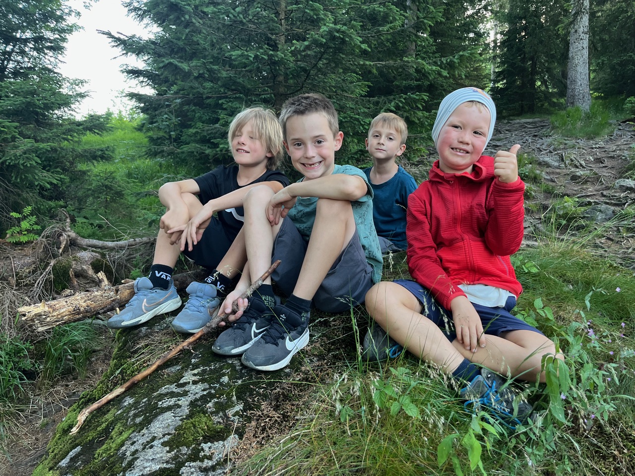 Nach einer mehr oder weniger geruhsamen Nacht machten wir uns auf, den Gipfel des Kleinen Arber zu bezwingen. Auch hier mussten die letzten Meter mit Hilfe des Seils auf die Felsen gekraxelt werden. Nach dem langen Abstieg zum Arbersee haben sich dann nicht nur die Kinder das Eis am Seehäusl verdient.