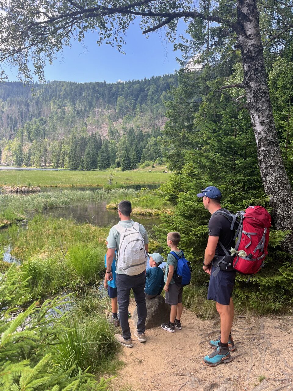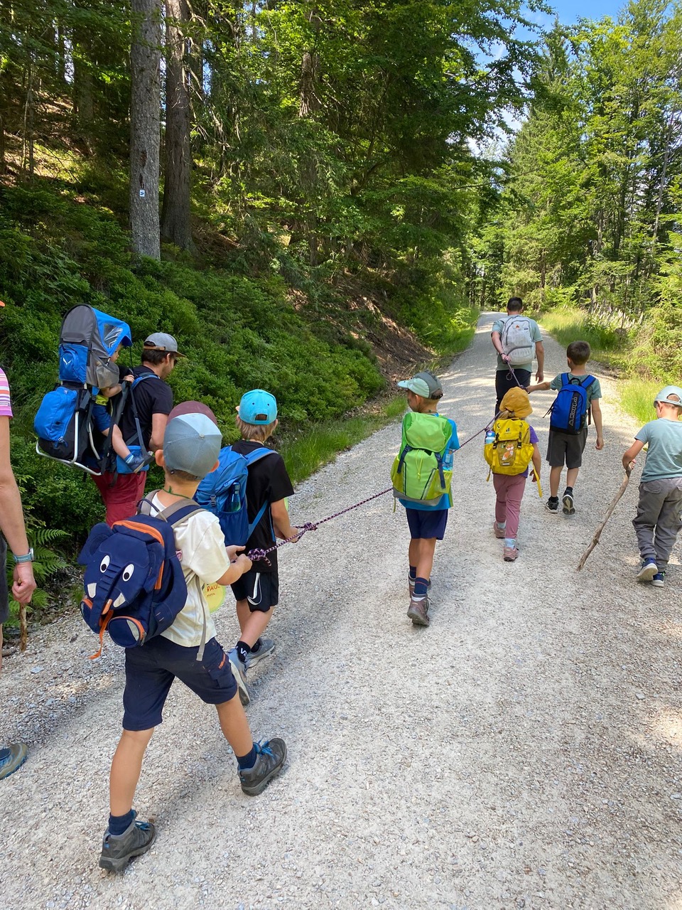 Unter diesem Motto haben wir uns getroffen um gemeinsam ein Wochenende im bayrischen Wald zu verbringen. Sieben Kinder zeigten ihren Mama und Papa die Natur aus ihren Augen. So entdeckten wir im kleinen Arbersee Kaulquappen, die sich teilweise schon in kleine Frösche verwandelt haben. Beim weiteren Aufstieg wunderten wir uns über die schaumigen Nester der Wiesenschaumzikaden, die diese zum Schutz vor der Witterung bauen. Und an einer Felswand musste das Seil ausgepackt werden um die persönlichen Kletterkünste zu beweisen.