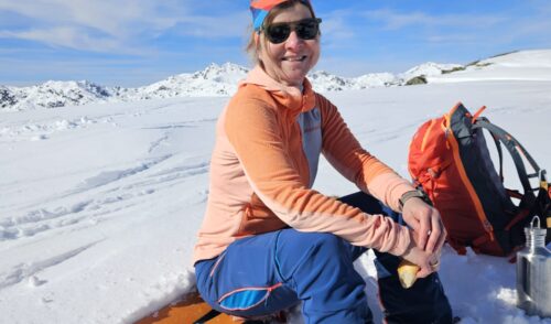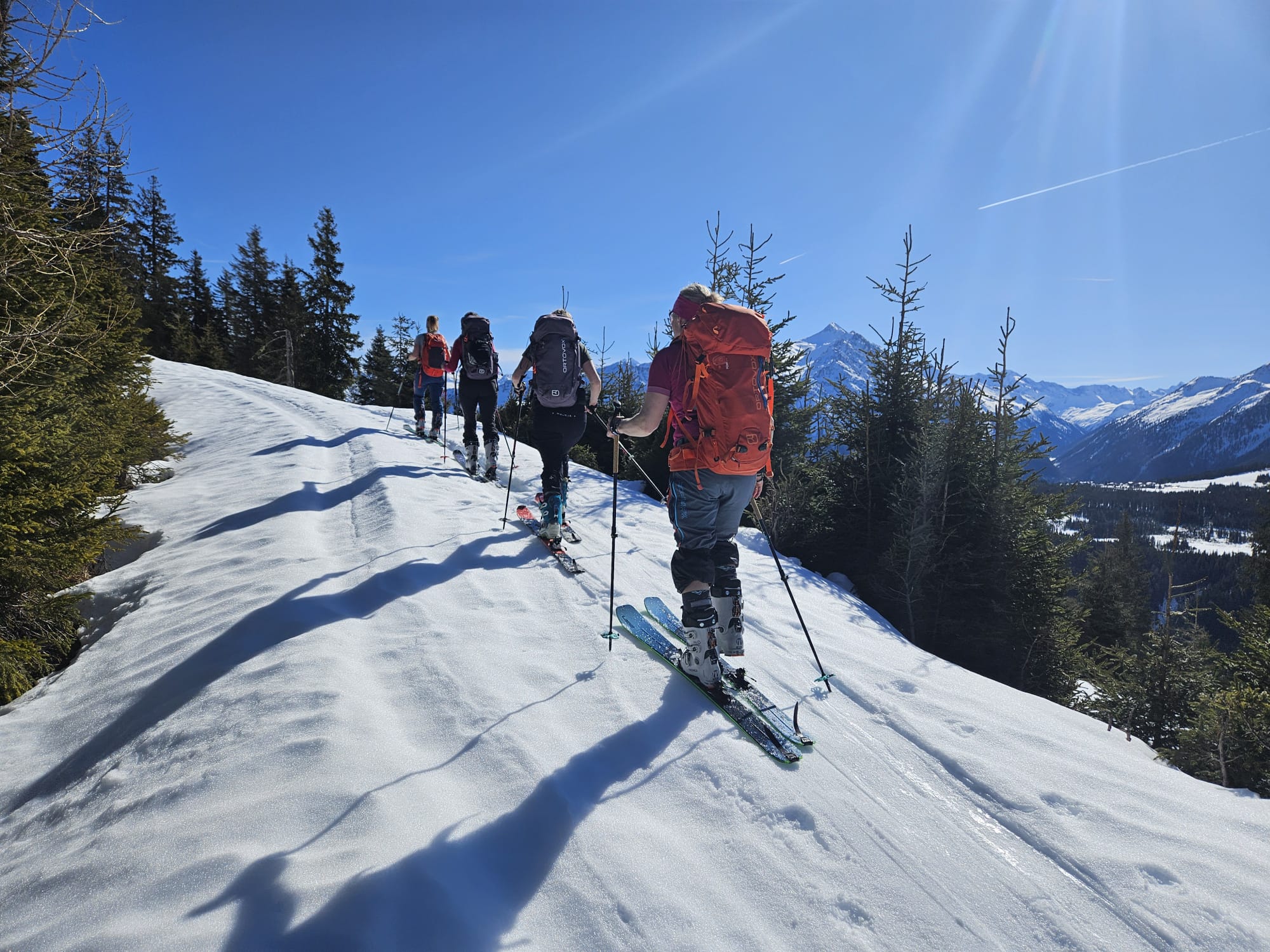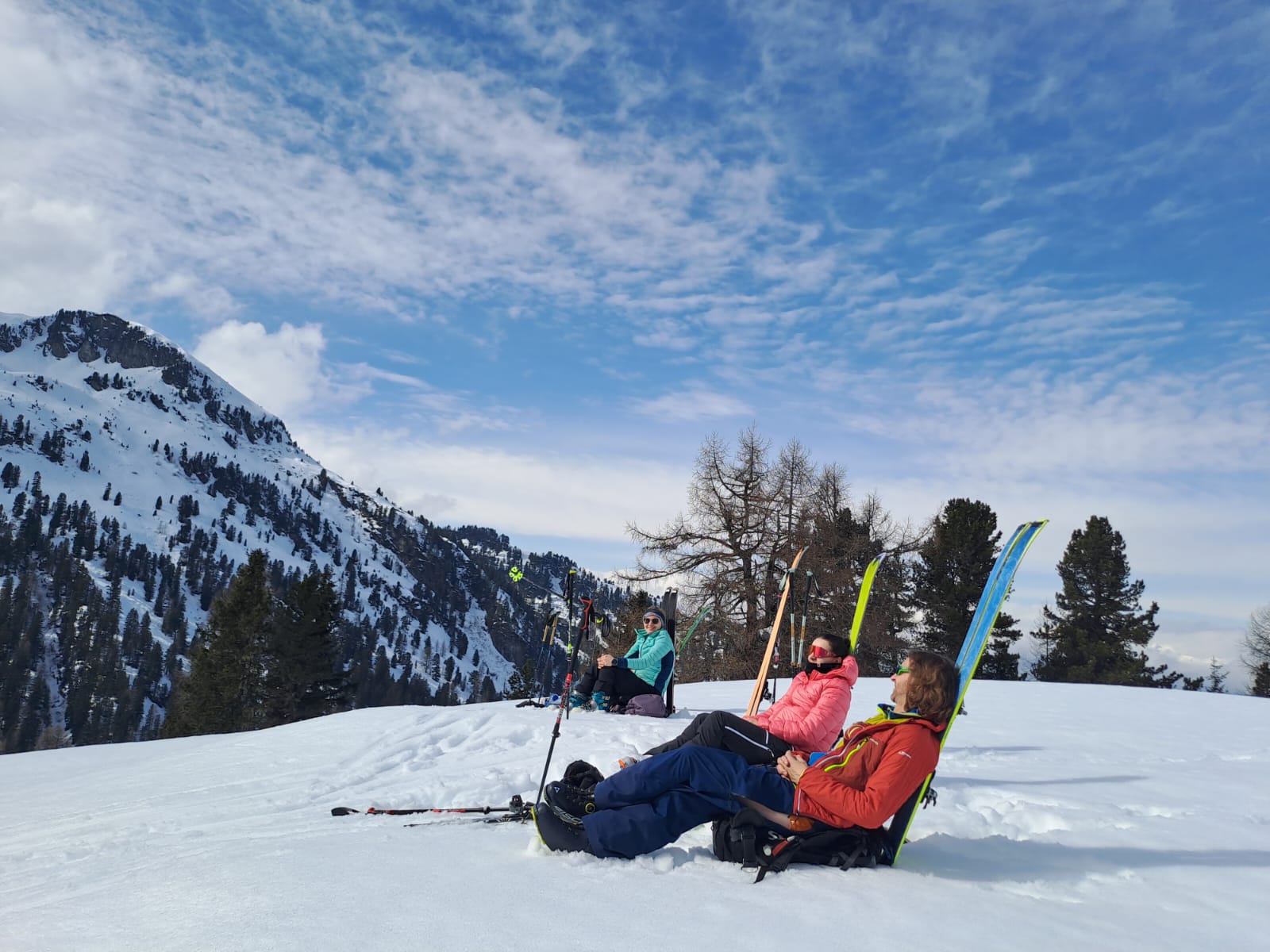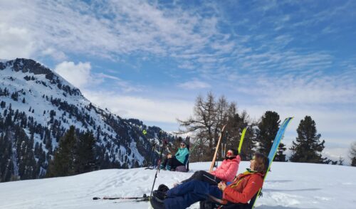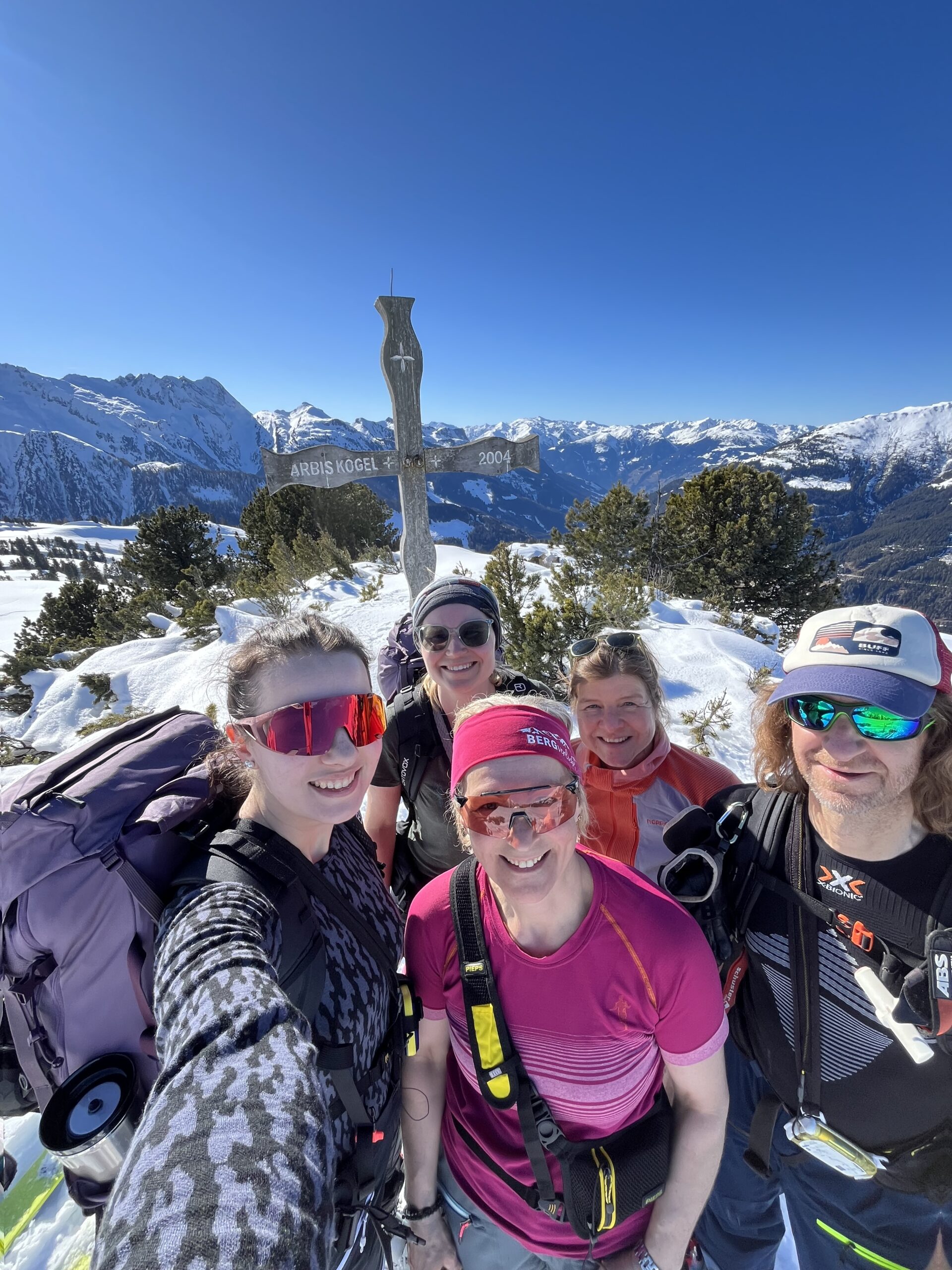 Bei traumhaften Wetter starteten wir unsere erste Tour zum Arbiskogel und genossen eine lange Sonnenpause am Gipfel mit Musik vom gegenüberliegenden Skigebiet.
