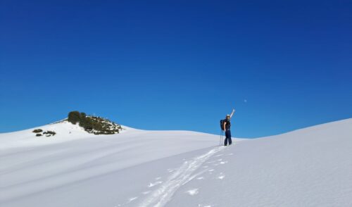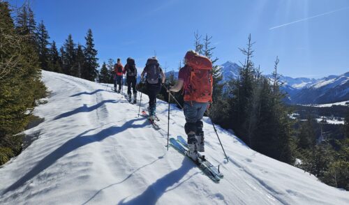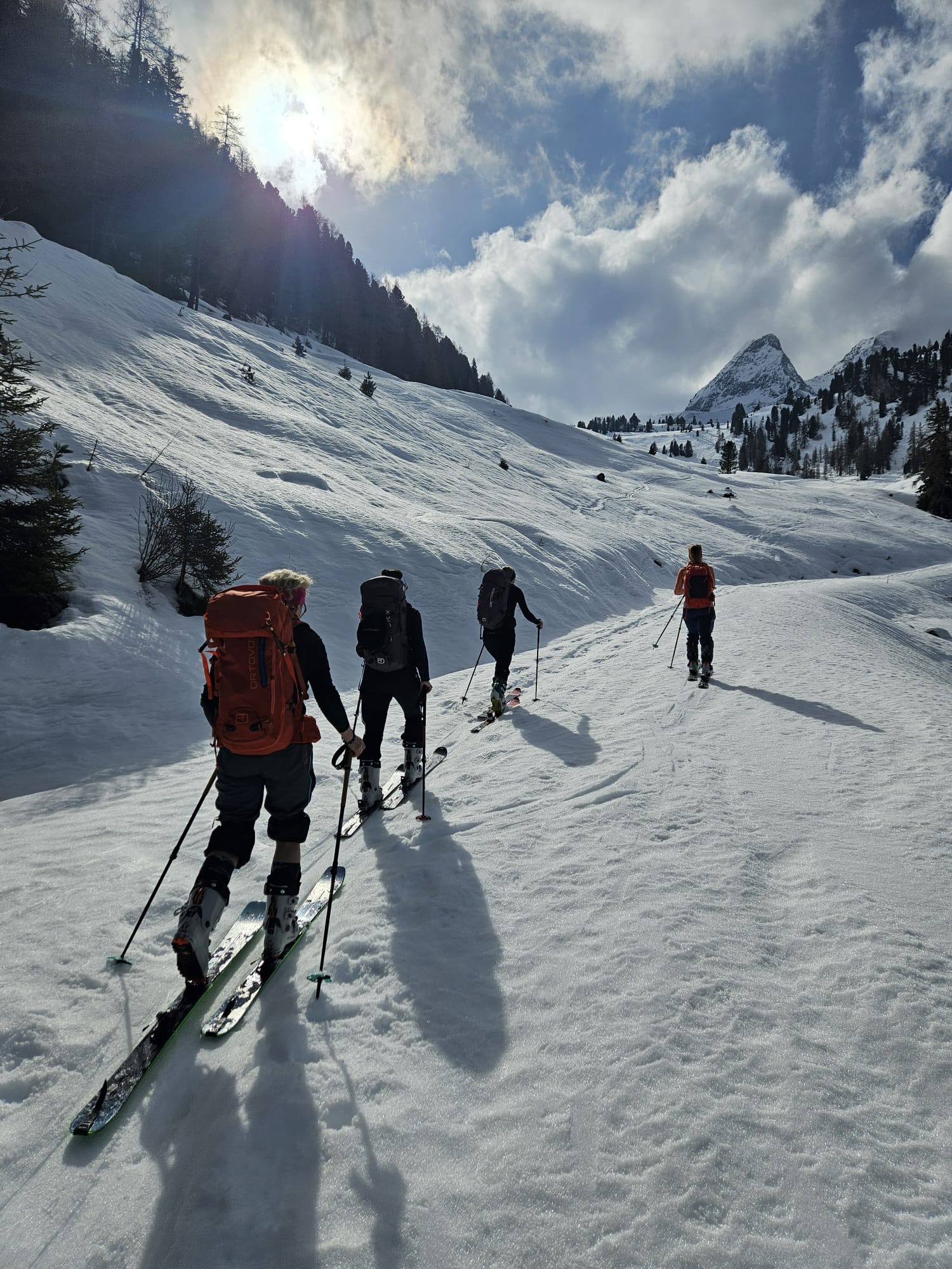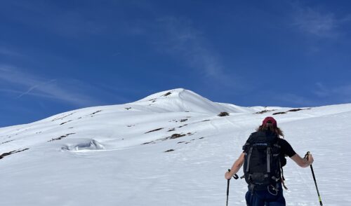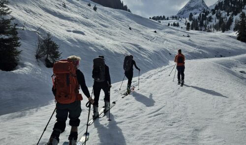 Am letzten Tag starteten wir mit Ski auf dem Rucksack direkt von der Kühlen Rast Richtung Schwemmboden, trotz Wolken riss es noch auf und wir konnten unseren letzten „Gipfel“ auch in der Sonne genießen! Nach einem hausgemachten Apfelstrudel stiegen wir wieder in den Bus und machten uns mit der Bahn weiter Richtung Heimat! 😋