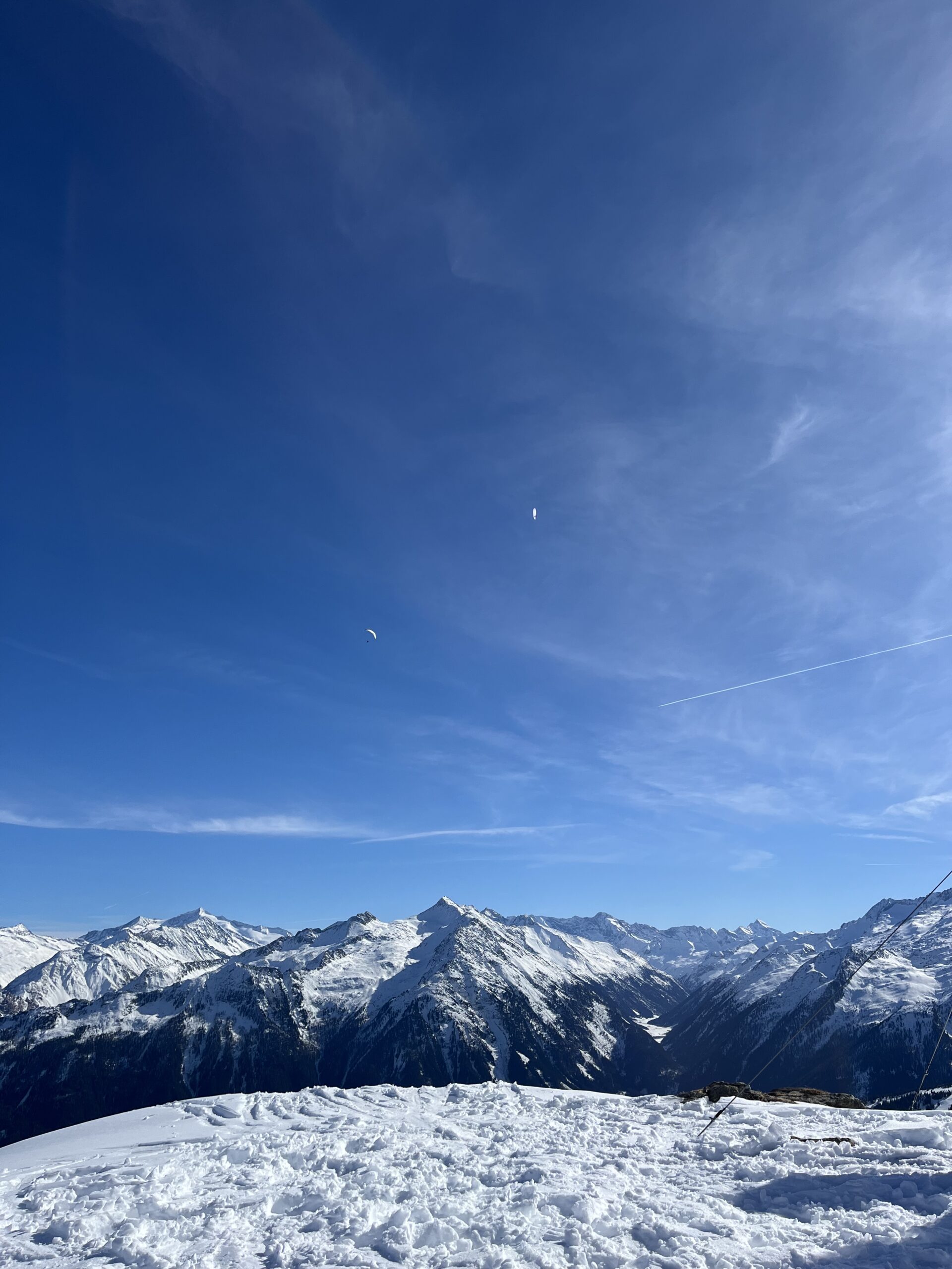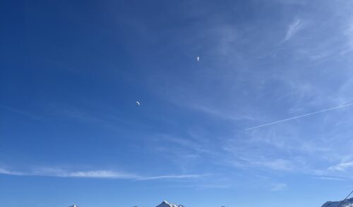 Am nächsten Tag hätte uns der Bus nicht ganz bis zum Tourstart gebracht, die Taxis ließen uns im Stich, aber unsere Hüttenwirtin Maria überließ uns ihren Peugot und vollbepackt konnten wir Richtung Ronachgeier starten! Nach einem panoramareichen Aufstieg genossen wir auch hier die Aussicht und Sonne mit ein paar Paraglidern über uns.