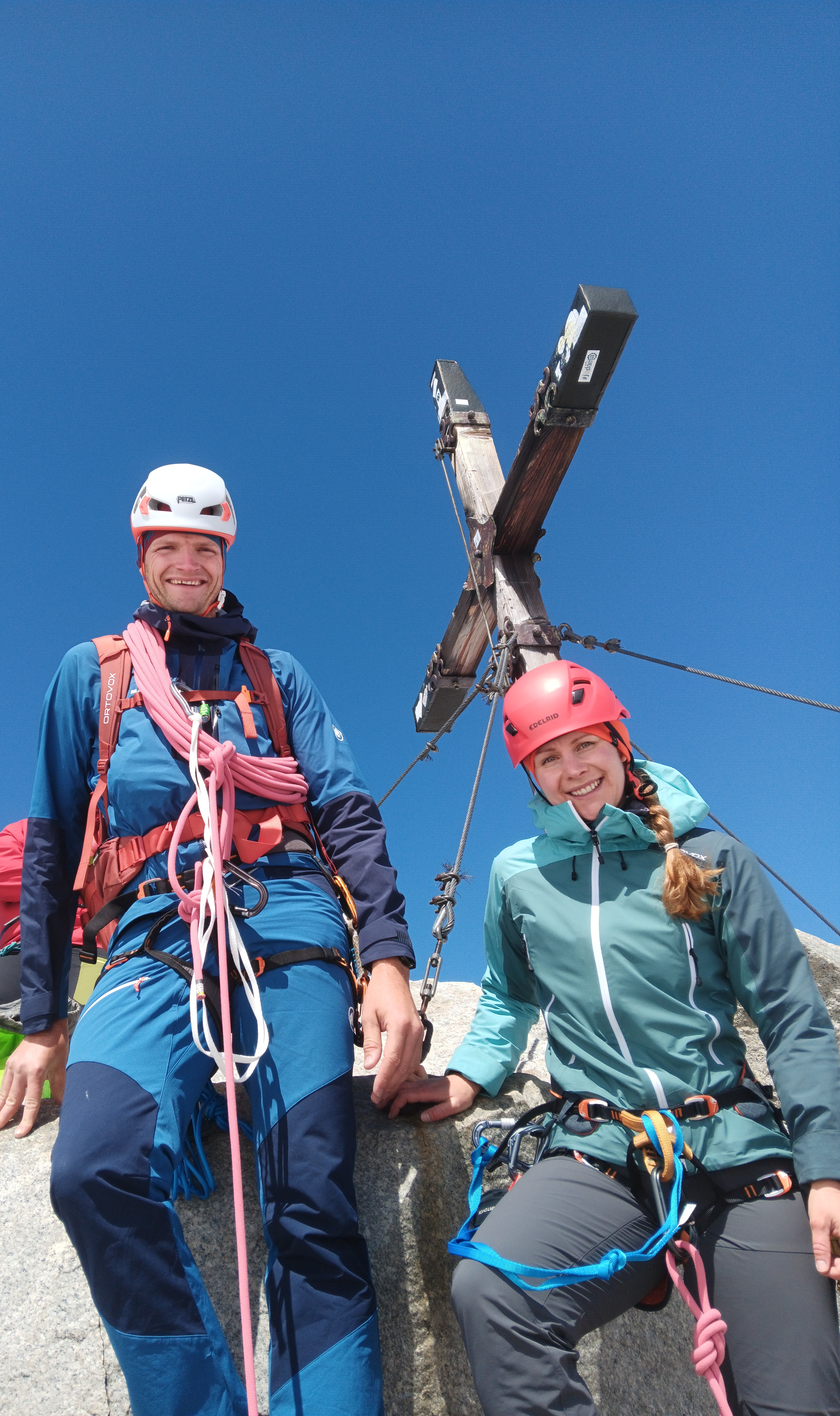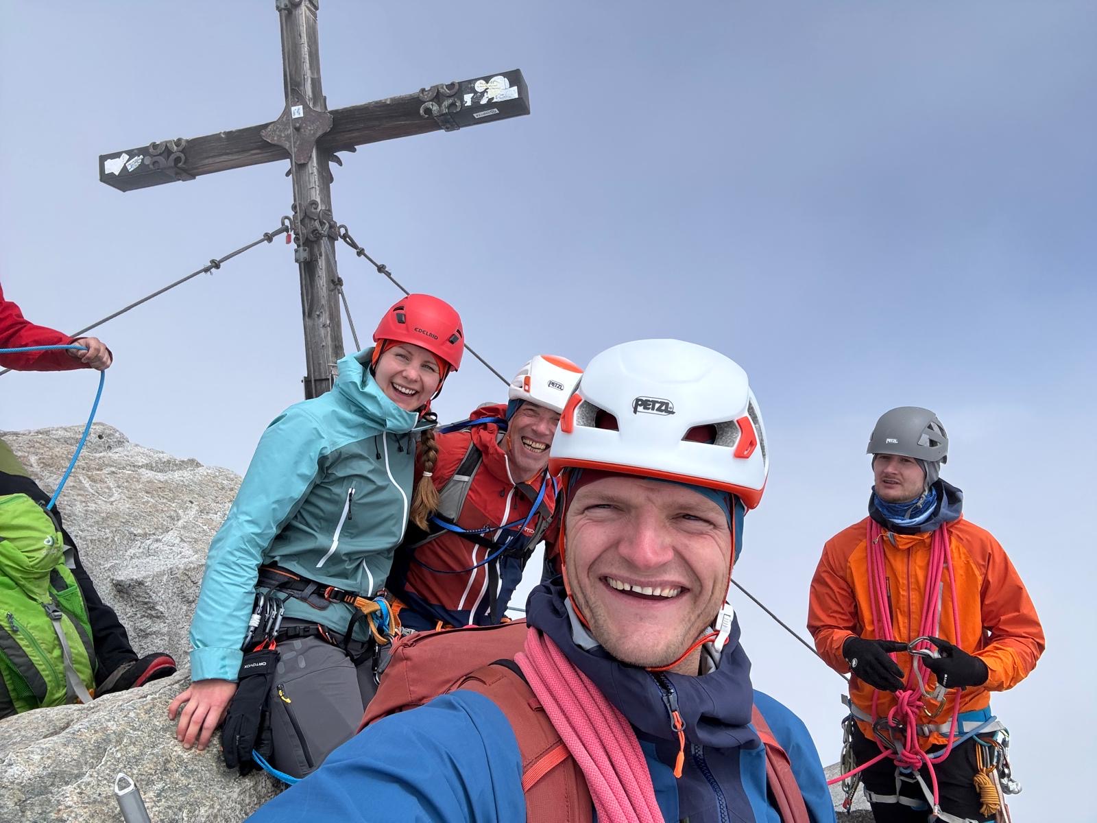 Die Tourenleiter Sepp Butz und Stefan Karch haben die Teilnehmer*innen Anna, Jakob, Marcin und Heiner gut über die Überschreitung geführt.