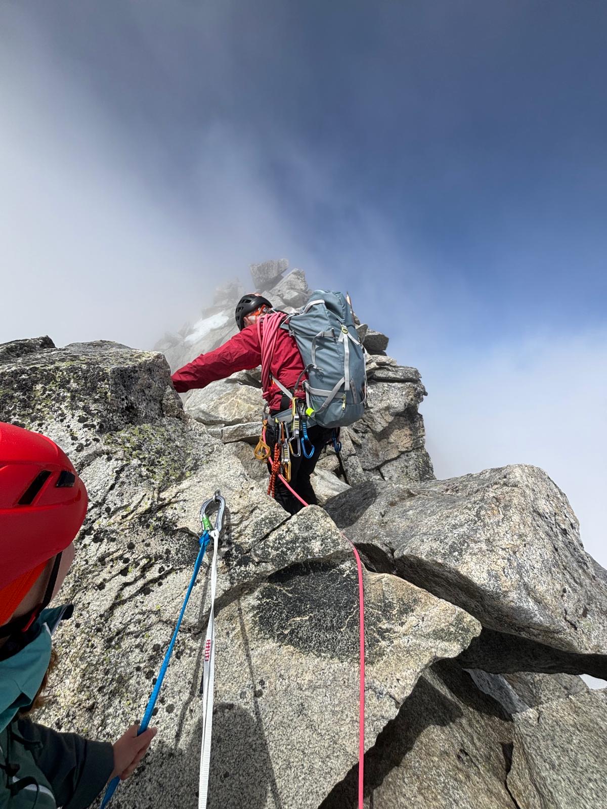 Freitag stiegen wir vom Schlegeisschaustee zur Olpererhütte über einen schönen Wanderweg auf. Nach einer guten Nächtigung und Frühstück wanderten wir erst zum Riepengrat und dann bei leichtem Nebel zum Schneegupfgrat. Obwohl einige alte Sicherungen entfernt wurden sind, kletterten wir ziemlich flott auf den Olperer. Als die hohe Bewölkung verflogen war, war die Sicht traumhaft.