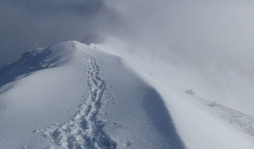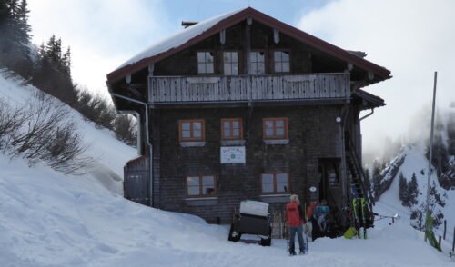 Am 06.02.26 starteten sechs Tourenteilnehmerinnen unter Leitung von Sepp bei Regen und Schnee vom Parkplatz der Hochgratbahn in der Nähe von Steibis/Oberstaufen über die Falkenhütte zum Staufner Haus. Der Weg führte die Teilnehmerinnen unter anderem ein Stück über den Grat der Nagelfluhkette – der Weg ist mit Schneeschuhen gut machbar. Dort bauten sie sogar noch einen Gipfel ein und stehen kurz vor dem Staufner Haus noch auf dem Gipfel des Seelekopf.