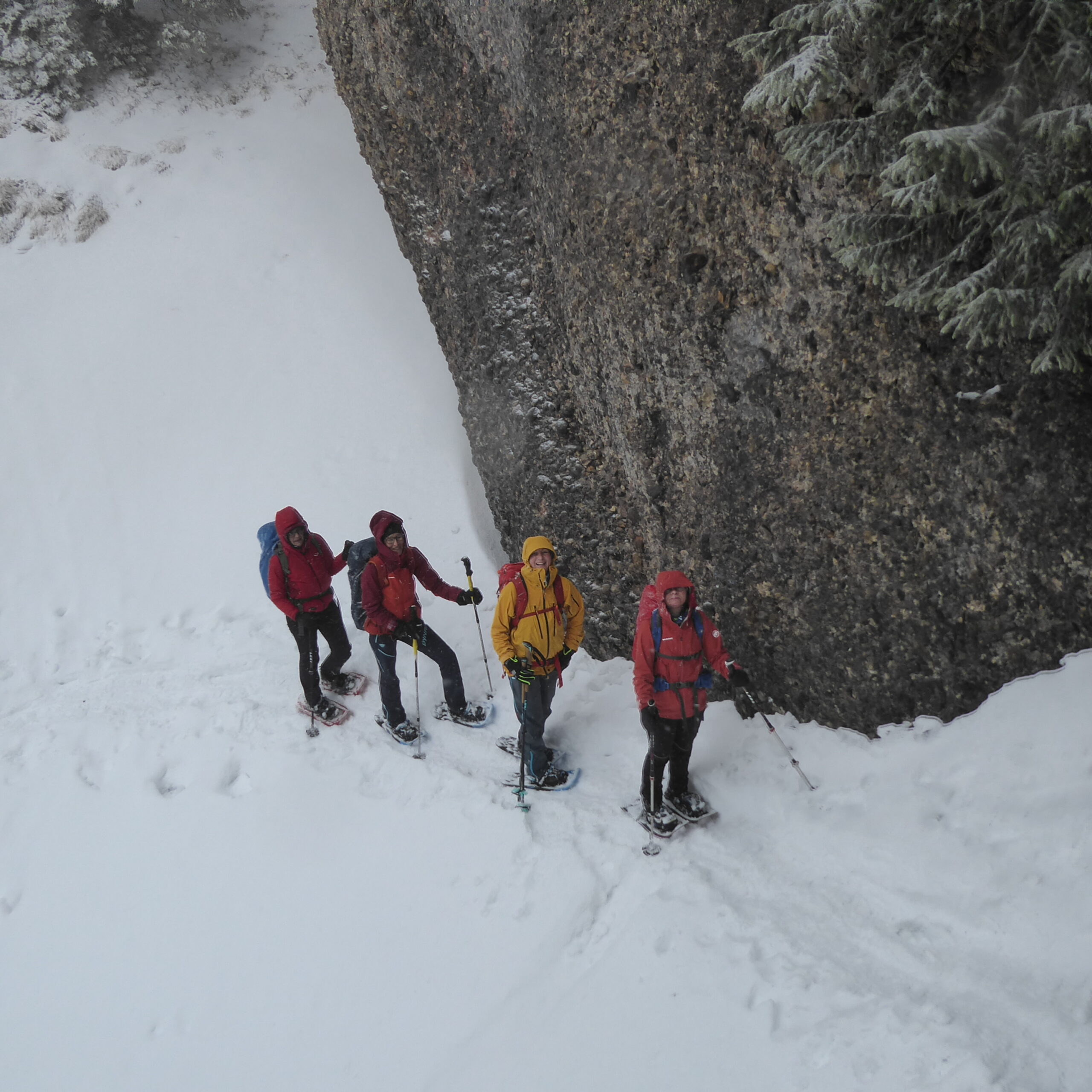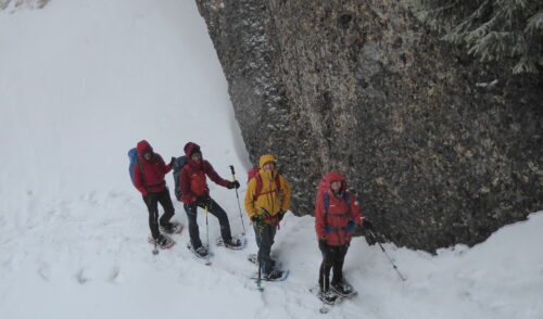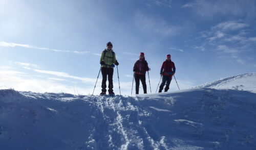 Über traumhaft eingeschneite Almwiesen, vorbei an uralten Bäumen setzten sie ihren Abstieg fort und gelangten schließlich im Tal auf einer dick eingeschneiten Straße wieder am Ausgangspunkt an.